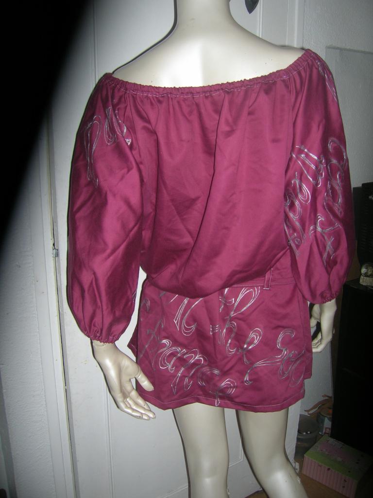 tunique en coton aubergine inscriptions anglaises taille 38( 45e)